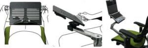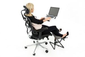 Rodzina Ergohuman umożliwia skomponowanie pełnego zestawu składającego się z fotela, podnóżka i pulpitu pod laptop.