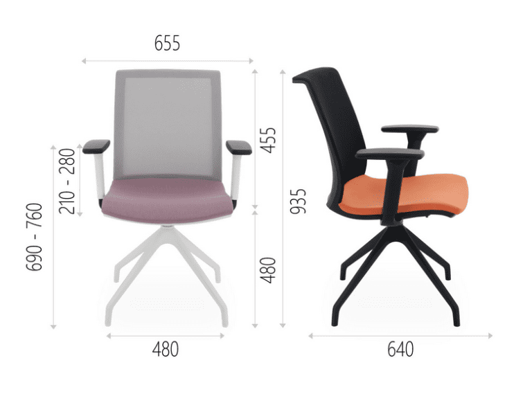 Podłokietniki (opcjonalnie): Krzesło posiada regulowane podłokietniki zapewniające prawidłowe ułożenie przedramienia i rąk do pracy przy biurku.